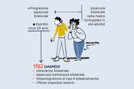Paziente con ipoacusia bilaterale progressiva da otosclerosi, diagnosticata negli anni ’80 e trattata con stapedectomia e successiva stapedoplastica, con iniziali buoni risultati e successiva protesizzazione acustica